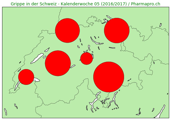 Diese Ergebnisse aus 300 ärztlichen Untersuchungen pro 100'000 Einwohner innerhalb der 5en Kalenderwoche 2017 stammen von der Sentinella-Grippe-Überwachung.